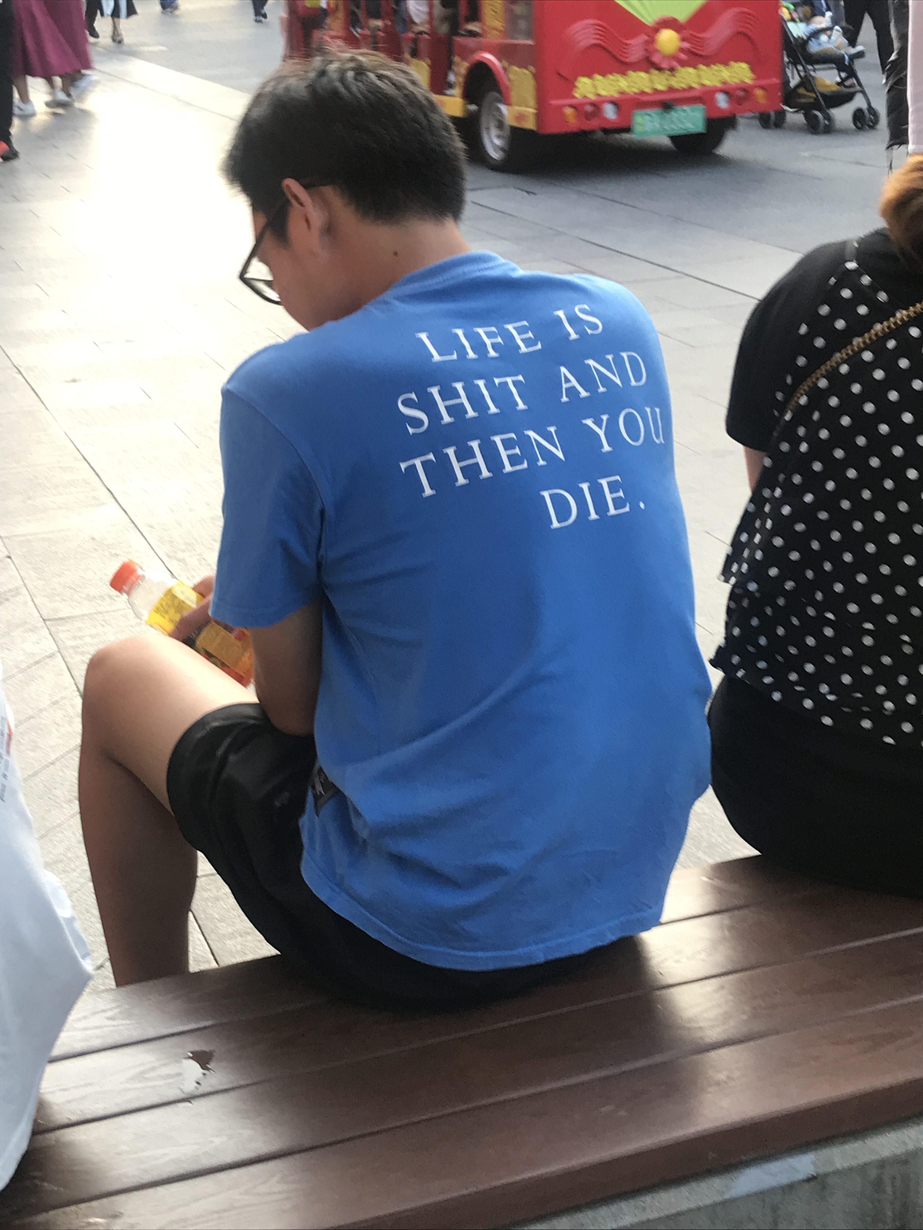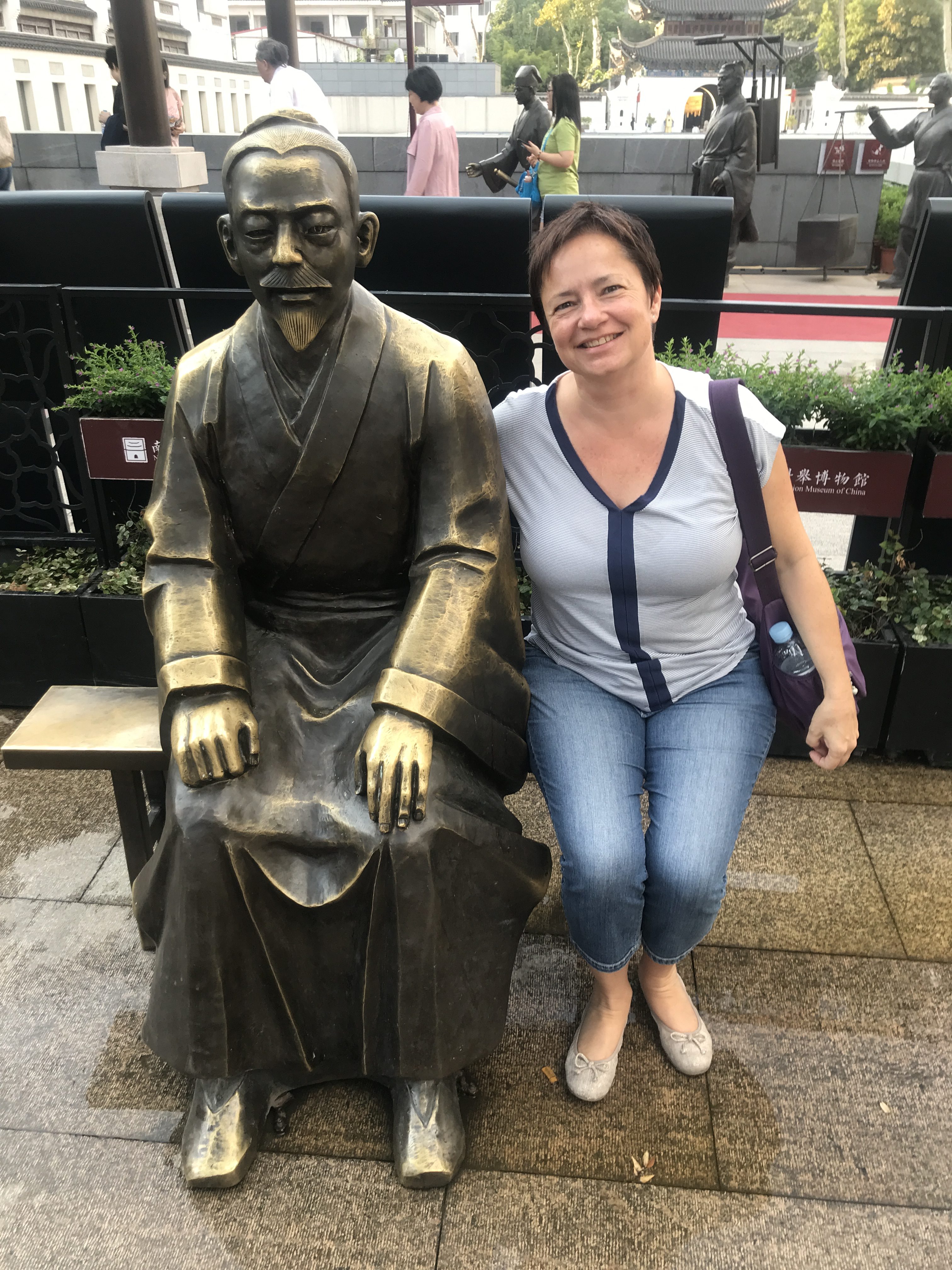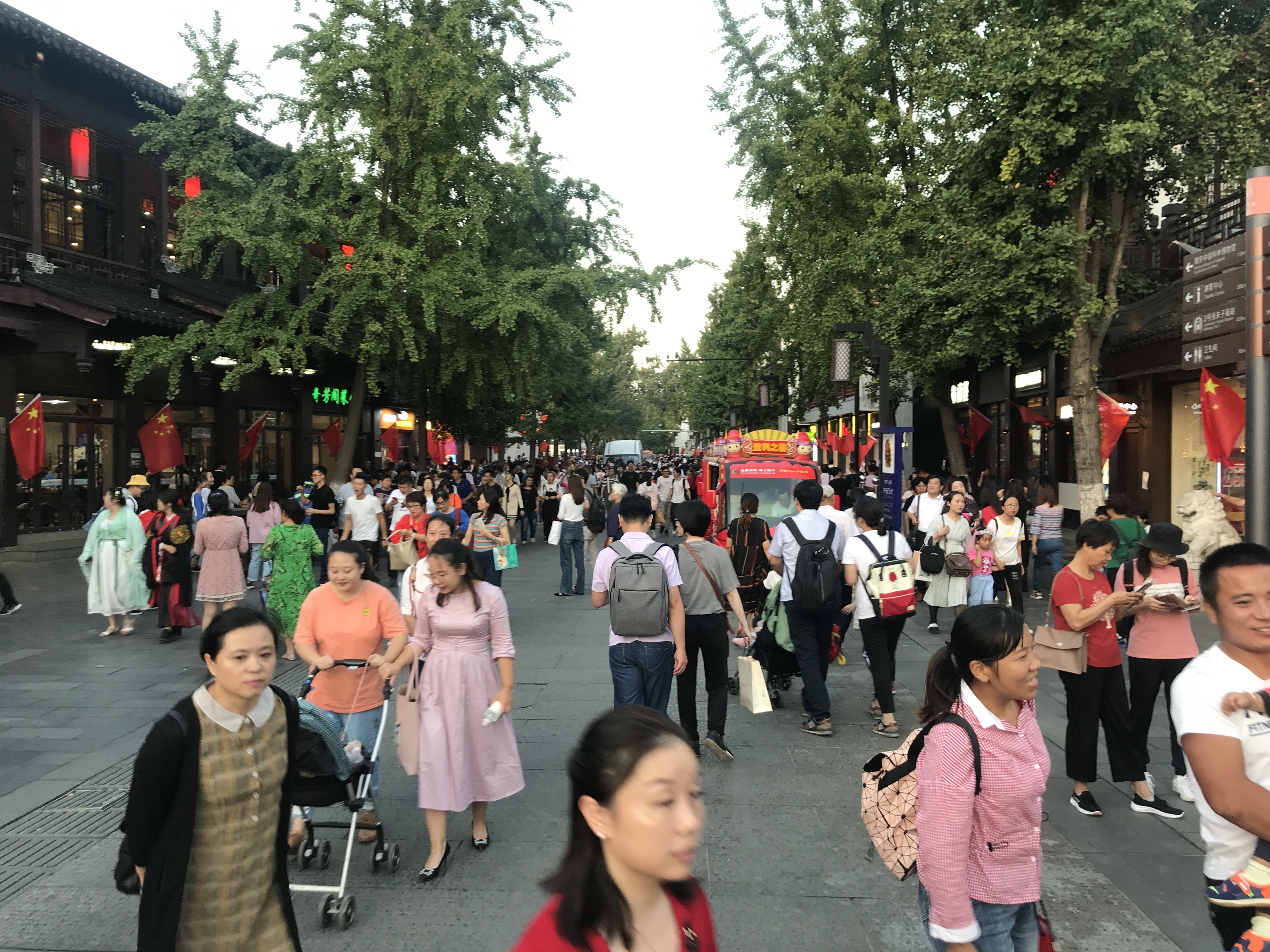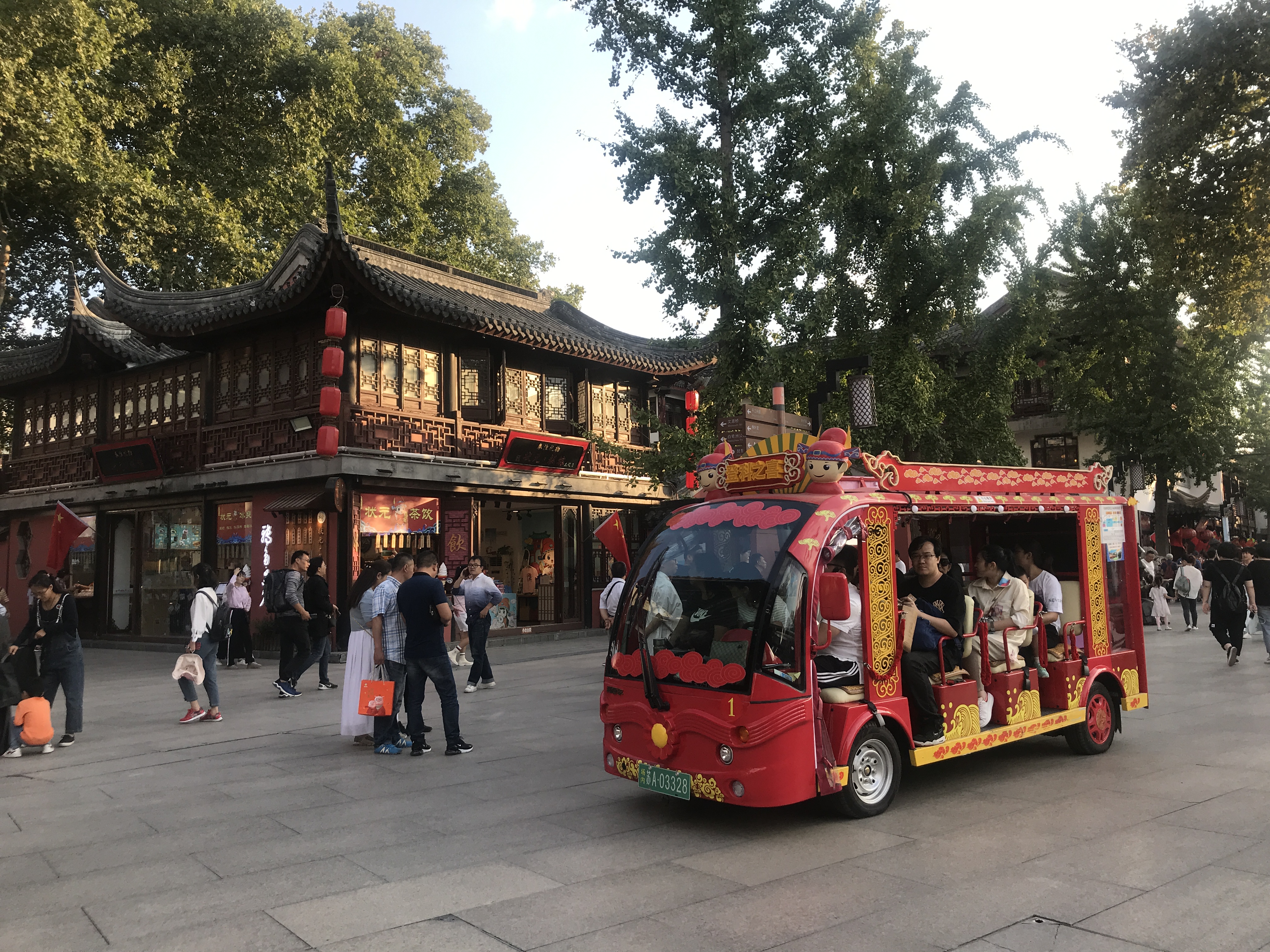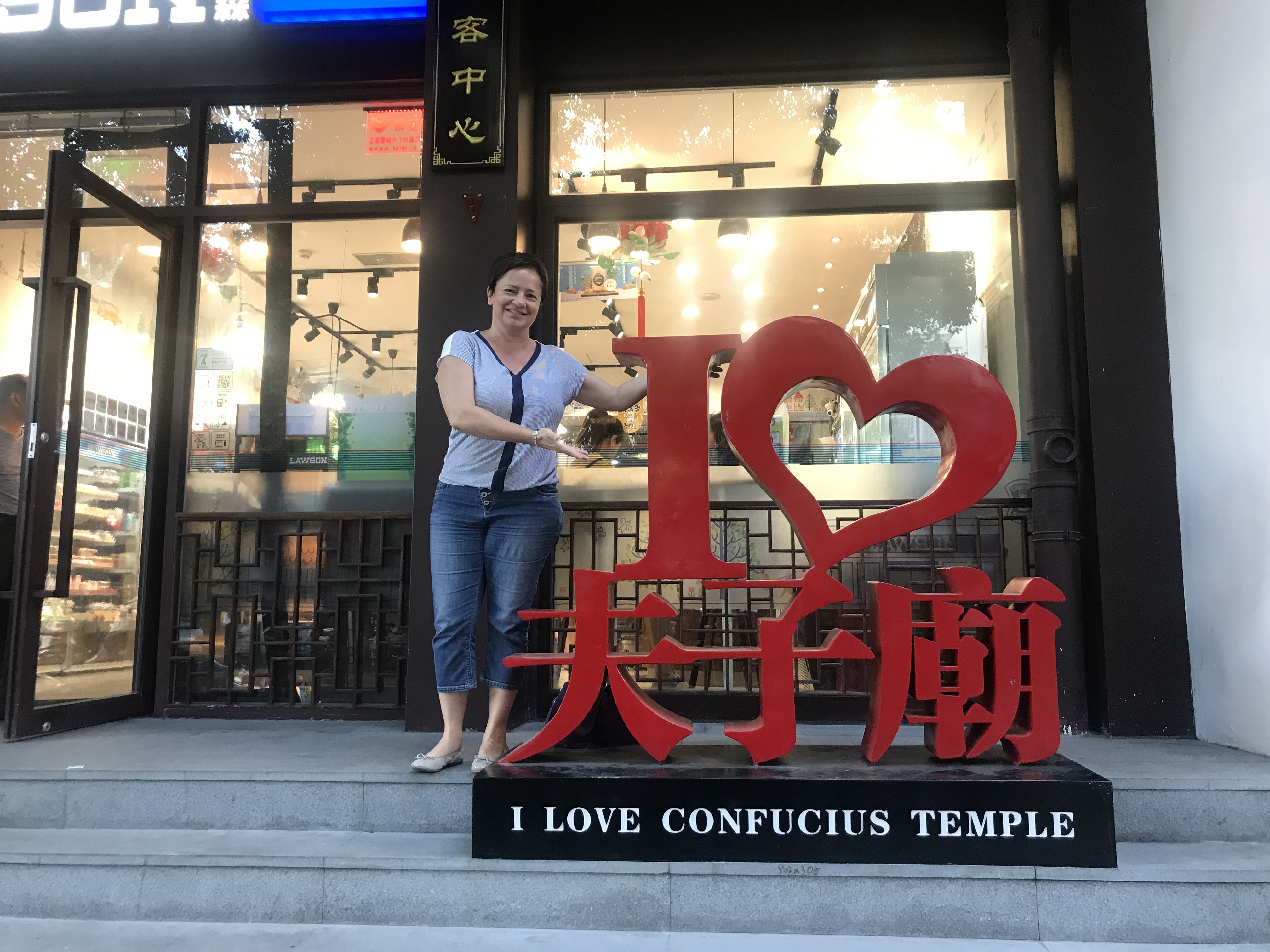 Mein Hotel liegt ungefähr 10 Meter vom Eingang DER Touristenmeile Nanjings entfernt. Da ich an einem Samstag Abend angekommen bin, teilte ich die Gegend mit ungefähr 238490234983 Chinesen. Pro Quadratmeter. In der Nähe hat es einen berühmten Konfuzius-Tempel, der dem Quartier auch seinen Namen gab. Tempel heisst übrigens „Miao“ auf Chinesisch. Und Konfuzius „Fu Zi“. Also „Fu Zi Miao“ 夫子庙 (das i in „Zi“ wird fast nicht betont. Es tönt, wie wenn man nur das „Z“ sagen würde).