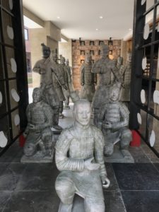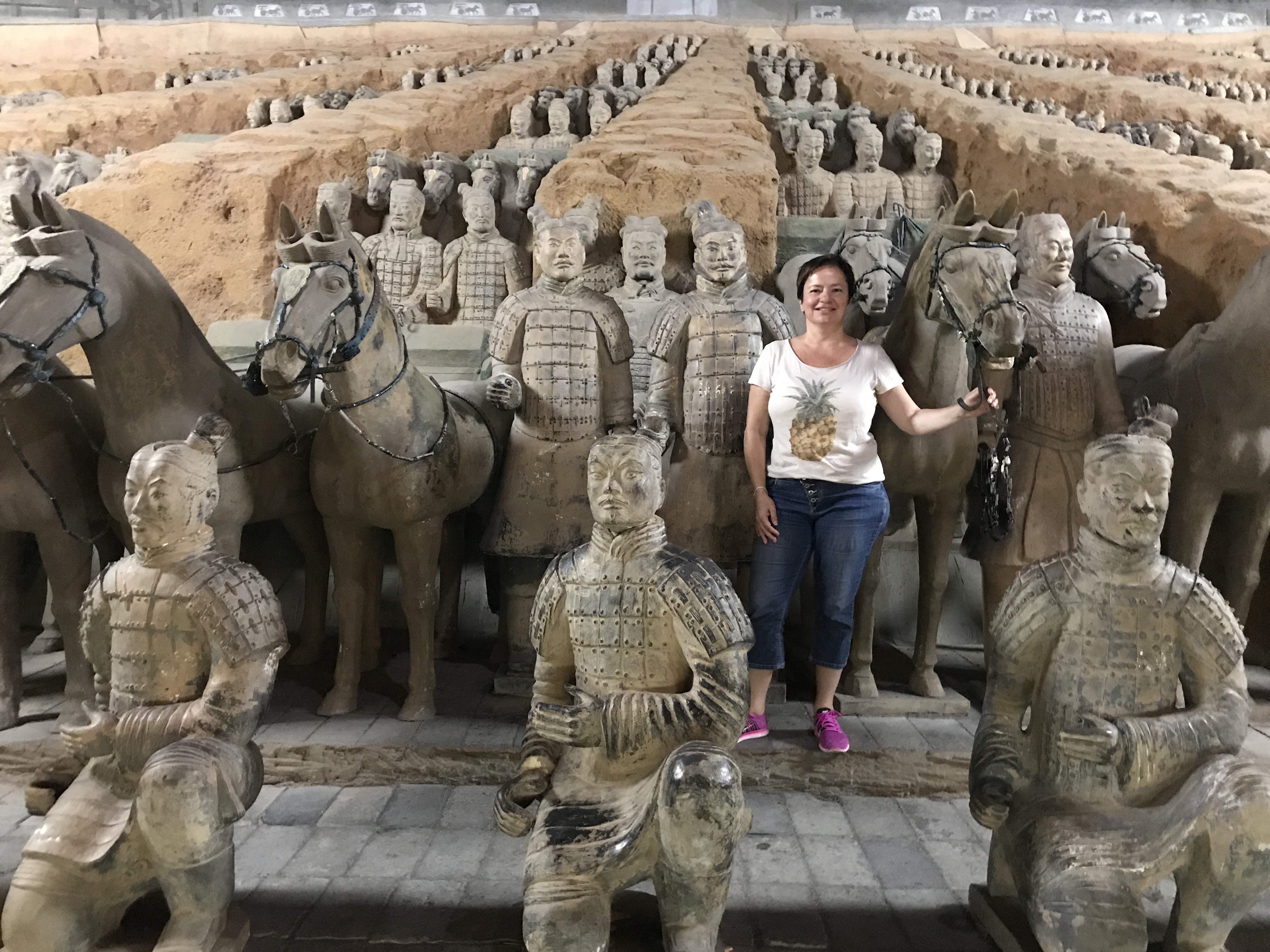 Nach Xi’an geht man natürlich hauptsächlich wegen der Terrakotta-Armee. Mirta und ich haben dank des Kontaktes einer Schweizer Kollegin (danke, Monika!) für zwei Tage eine lokale Reiseleiterin gebucht. Mit ihr beginnen wir – natürlich – bei der Ausgrabungsstätte.