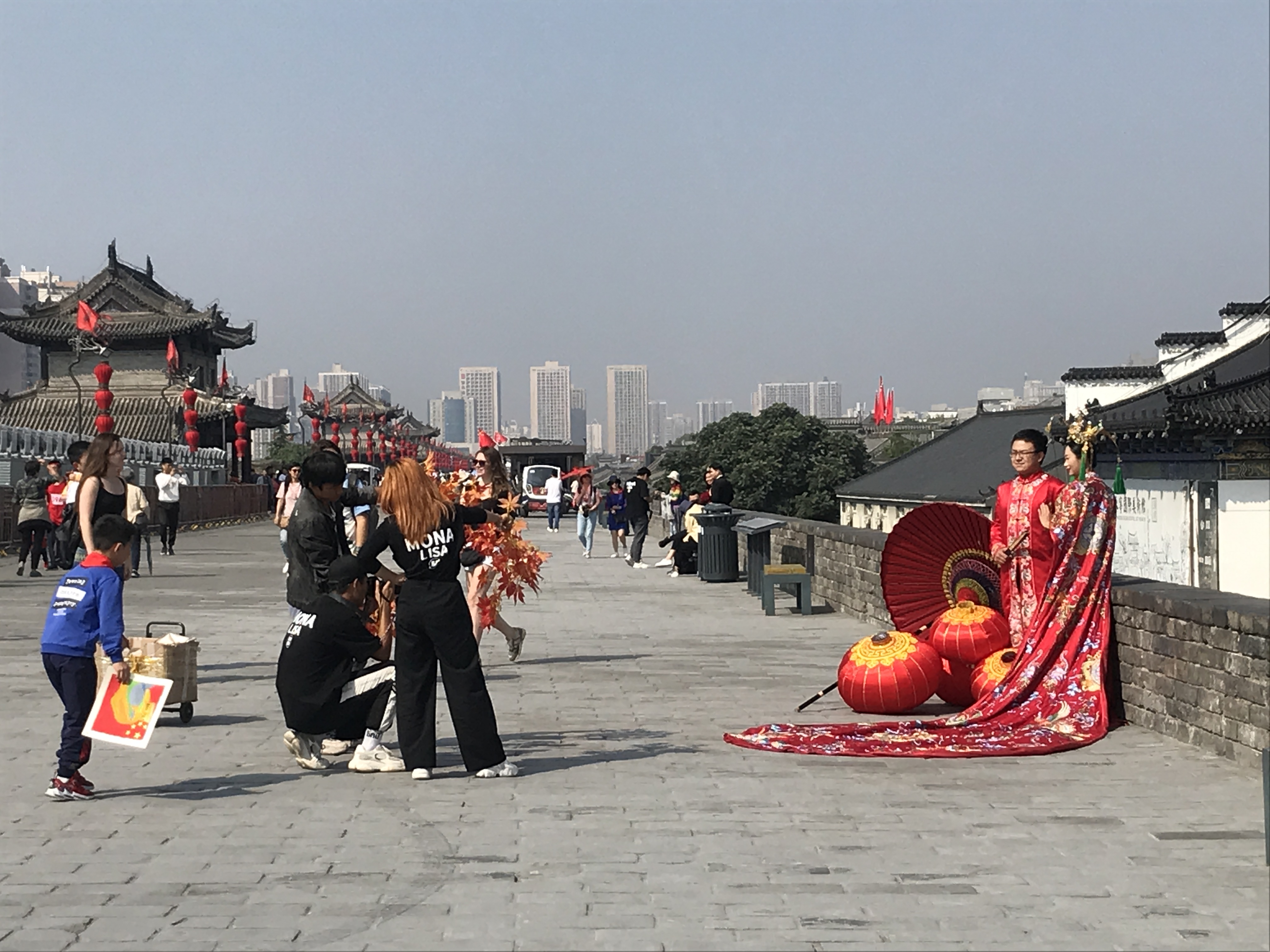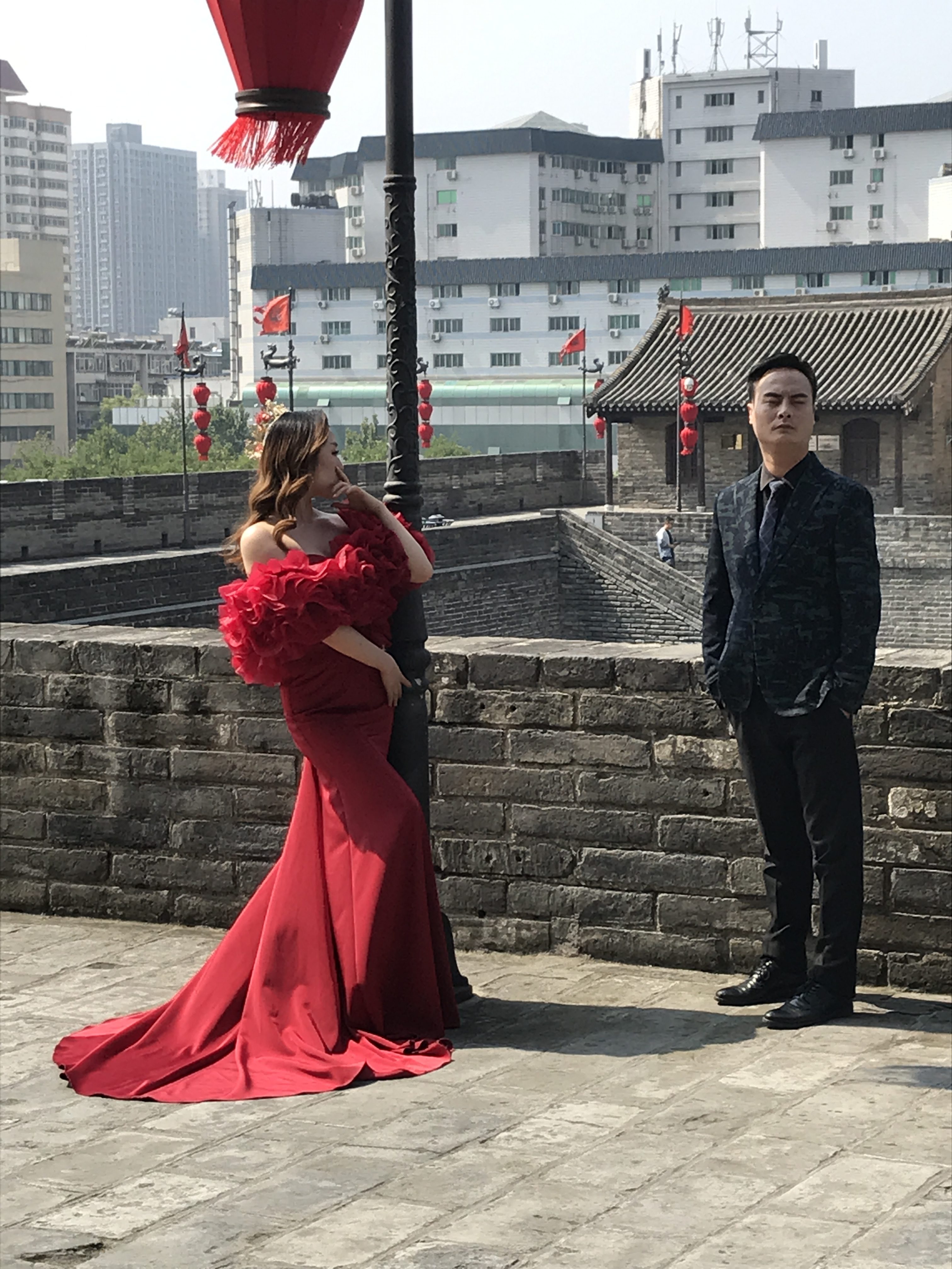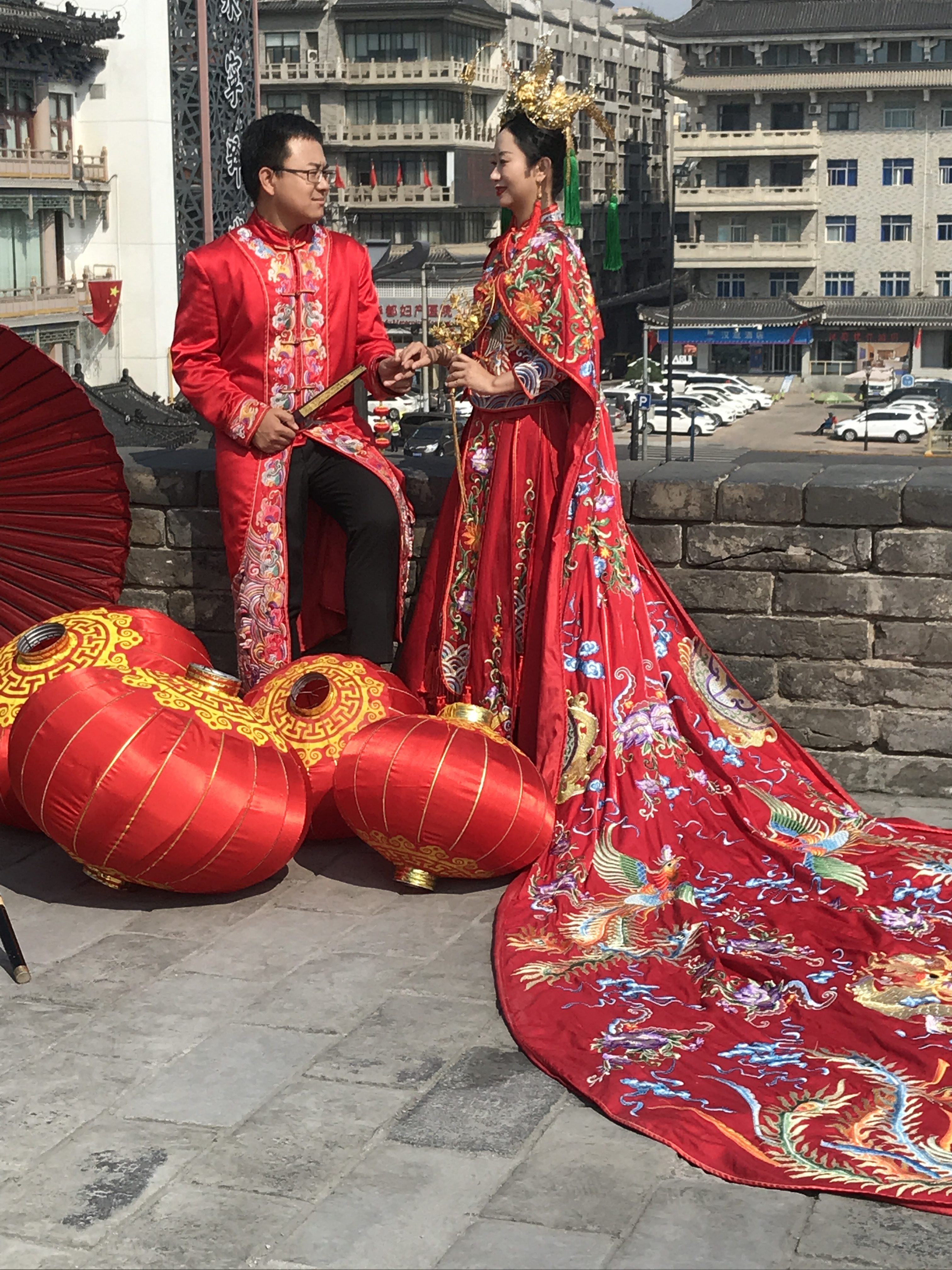Xi’an mit seinen vielen wunderschönen Ecken bietet sich natürlich perfekt an für Hochzeitsfotos. Das ist ein riesiges Business in China, und die jungen Brautleute geben viel Geld dafür aus. Üblich ist, dass man Fotos lange vor der Hochzeit – und in unterschiedlichen Kostümen – macht, damit man das Fotoalbum dann bei der richtigen Hochzeit auflegen und den Gästen zeigen kann.
