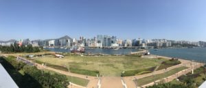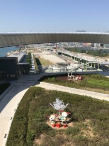Auf dem Areal des alten Flughafens Kai Tak steht heute das Kai Tak Cruise Terminal, welches für Kreuzfahrtschiffe genutzt wird. Es ist riesig und ziemlich leer… Aber auf dem Dach haben sie eine schöne Fussgängerzone eingerichtet, von der aus man eine einmalige Sicht hat auf die Stadt und den Eingang des Hafens. Man kann es sich definitiv nicht mehr vorstellen, wie früher die Flugzeuge direkt über die Hochhäuser gekurvt und dann dort gelandet sind.